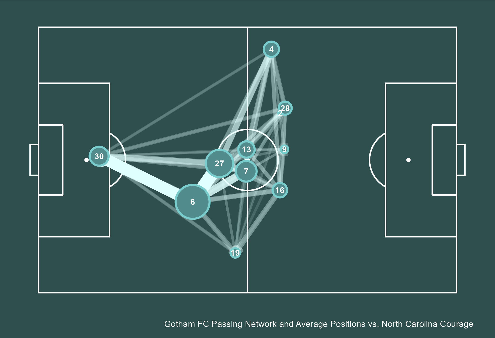 Gotham’s lack of wide attackers showed in the tactics that the team employed, with most progression coming from quick and short passes between lines smack dab in the middle of the pitch.