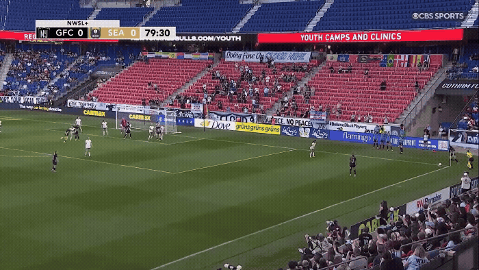 Gotham took a while to get going in the second half, but supersubs Lilly Reale and Esther González almost had instant impact as they worked together on this one. Lavelle and Reale do a great job of moving the ball closer to goal and Esther is excellent at receiving it, but Seattle’s defense leaves her trapped when it comes time to shoot. Maybe she could have passed to Jaedyn Shaw who seemed to have a better angle, but also maybe not.