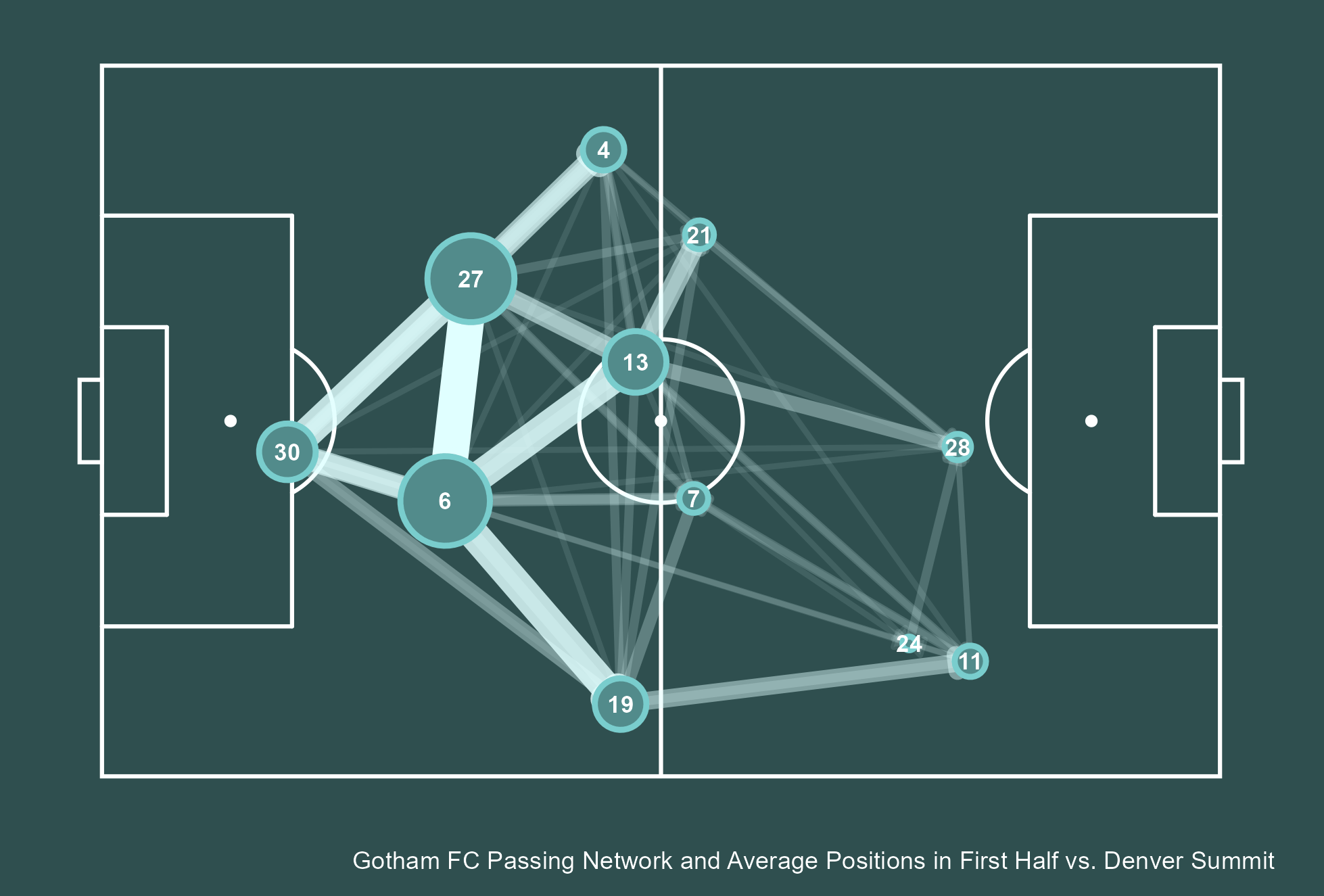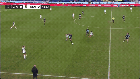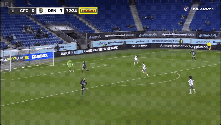 But on the other hand, Gotham allowed 5 whole shots on target that combined for a whopping 2.5 PSxG. The biggest non-goal chances that Gotham conceded came from regular build-up play, where gaps between lines were easily exposed and Gotham looked slow and reactive rather than fast and proactive.