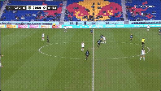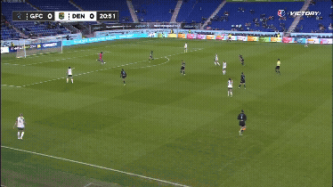 This ball to Lampson came all the way from center back Jess Carter, which explains why it’s not perfect. Lampson did a decent job managing it, but unfortunately Denver did a better job with their defensive positioning.