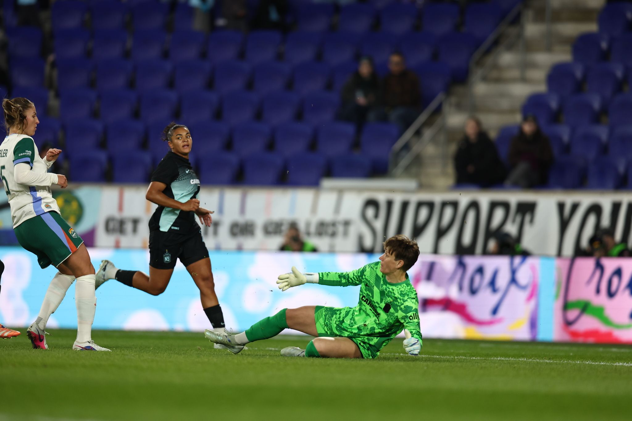 Speed from Midge Purce on the wing and speed from Jordynn Dudley in the middle as she effortlessly outruns most of the Denver Summit is what almost results in a goal.